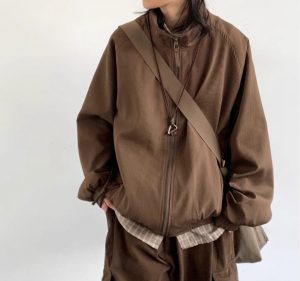 • Japanese-style Retro Loose Lapel Raglan Sleeve Zipper Jacket