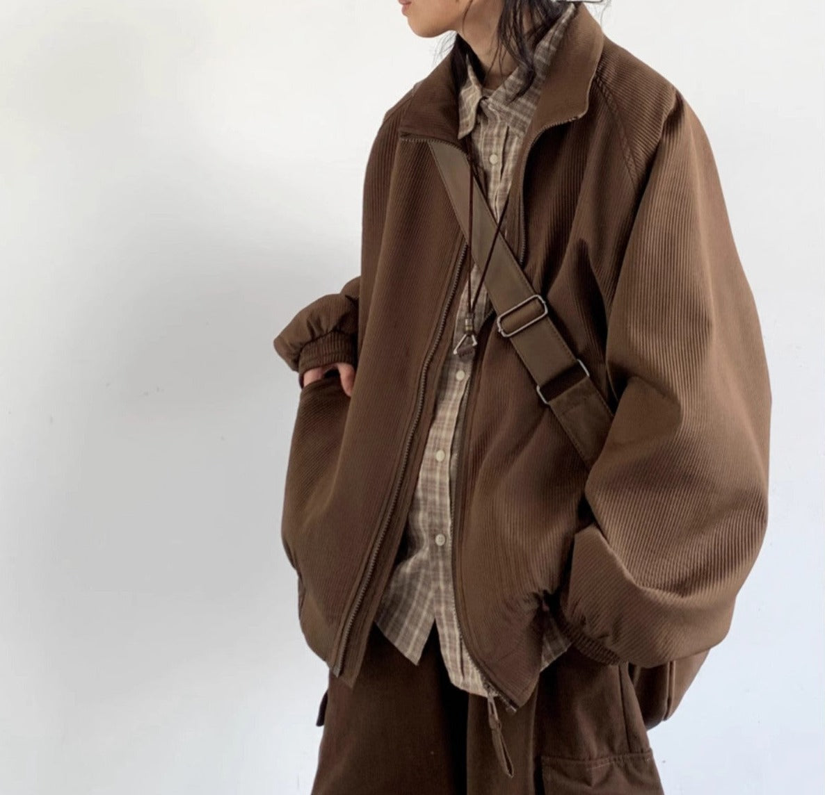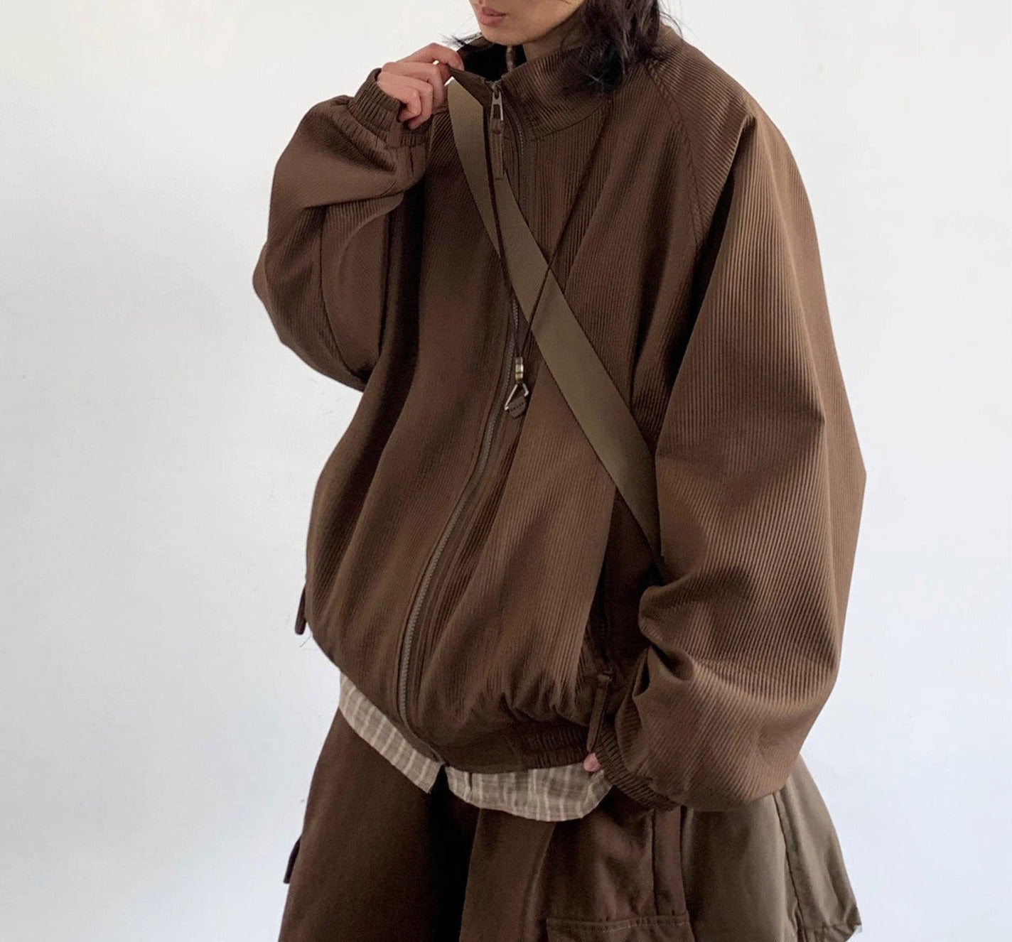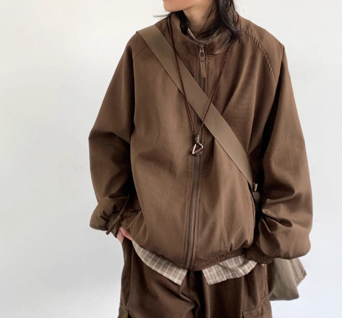 Japanese-style Retro Loose Lapel Raglan Sleeve Zipper Jacket